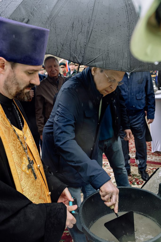 21 июня 2025 года почетный благочинный Царскосельского округа протоиерей Геннадий Зверев совершил молебен и освятил фундамент будущего храма во имя святого великомученика Георгия Победоносца, посвященного воинам-защитникам нашего Отечества. В сослужении благочинного Царскосельского округа протоиерея Никиты Зверева